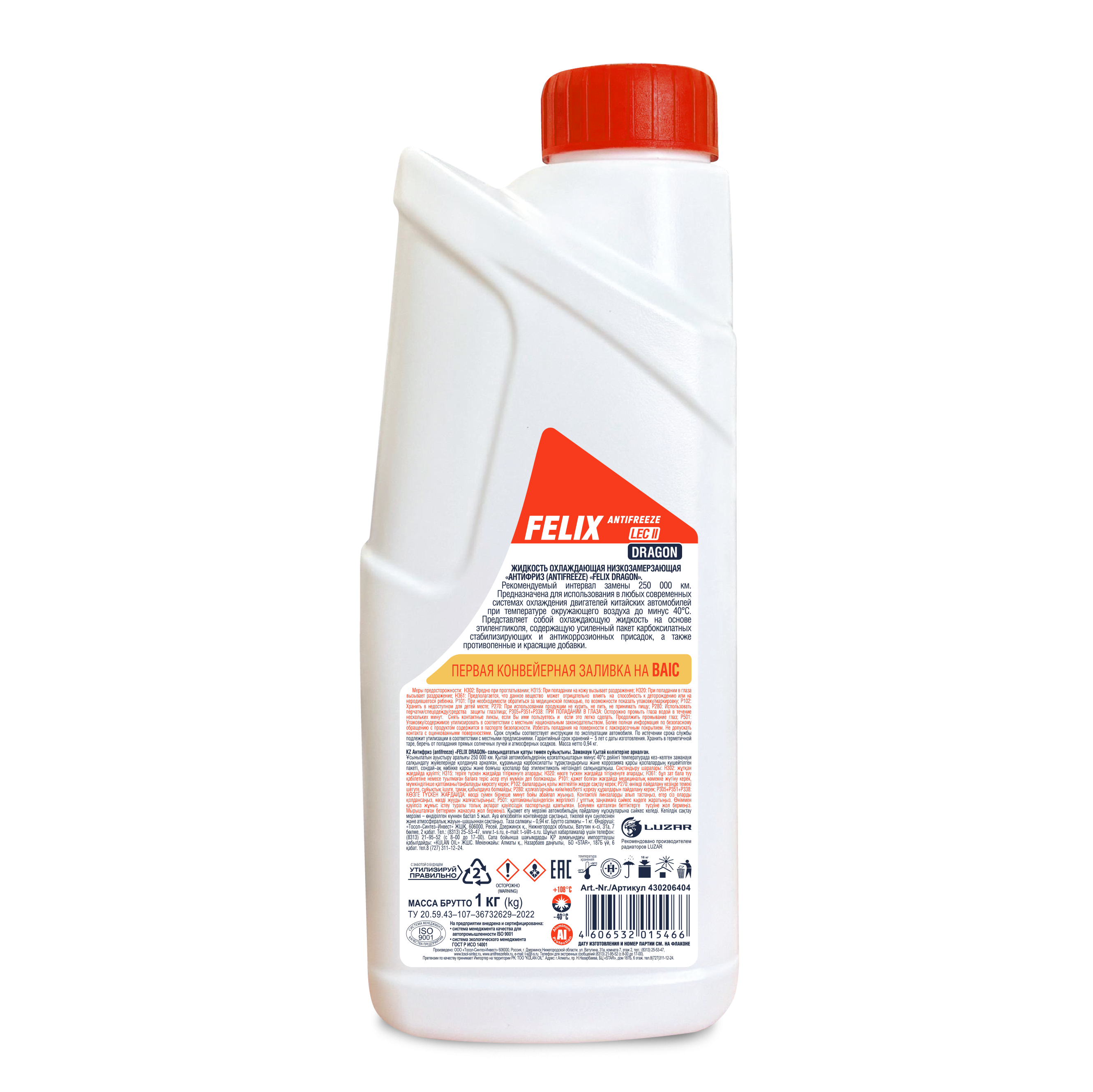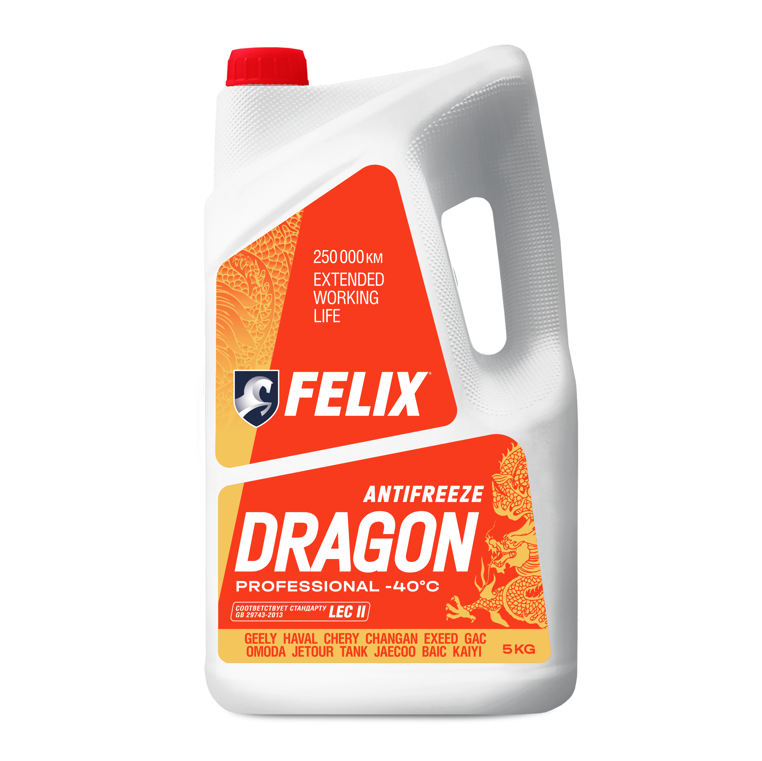Антифриз FELIX DRAGON – профессиональный карбоксилатный антифриз, созданный специально для китайских автомобилей Haval, Geely, Chery, Changan, GAC, BAIC на основе собственной рецептуры компании «Тосол-Синтез».